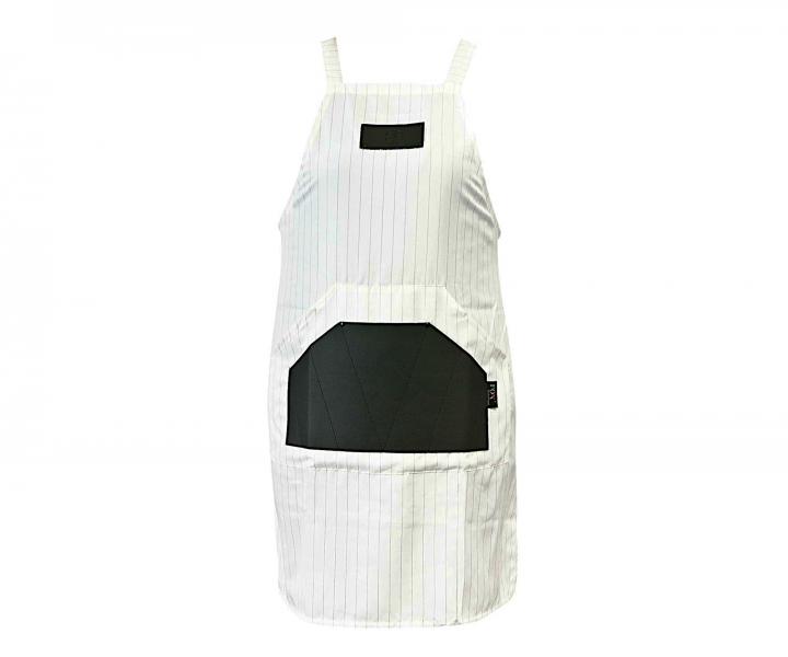 Barber zástera pre holičov Fox Barber Expert má popruhy cez chrbát. Vďaka týmto popruhom zvládnete v zástere pracovať celý deň bez toho, aby ste o nej vedeli. Odolný materiál vyrobený z jemného a mäkkého 100% polyesteru, ktorý chráni pred lietajúcimi vlasmi a fúzmi. Súčasťou zástery je päť pevných vreciek, ktoré využijete na uchovanie náradia pri práci.