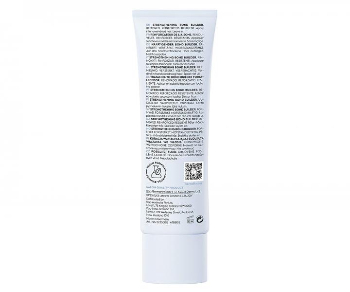 Intenzívna hĺbkovo ošetrujúca bezoplachová starostlivosť Kerasilk Strengthening Bond Builder je špeciálne navrhnutá pre vysoko poškodené a oslabené vlasy, ktoré obnovuje, posilňuje a dodáva im odolnosť. 100% vegánske zloženie starostlivosti, obohatené o biomimetický hodváb a látku bondamide, vytvára v poškodenom vlasovom vlákne nové väzby, ktoré posilňujú a reštrukturalizujú vlas až do jeho kôry (kortexu). Vlasom tak dodáva prirodzenú silu, pevnosť, predchádza ďalšiemu lámaniu až o 98 % a zlepšuje ich pružnosť. Výsledkom sú tak až 20x silnejšie, hladké, lesklé a zdravo vyzerajúce vlasy. Starostlivosť vo vlasoch zanecháva príjemnú kvetinovú vôňu. Zloženie neobsahuje silikóny, parabény, sulfáty, farbivá, mikroplasty a minerálne oleje.
