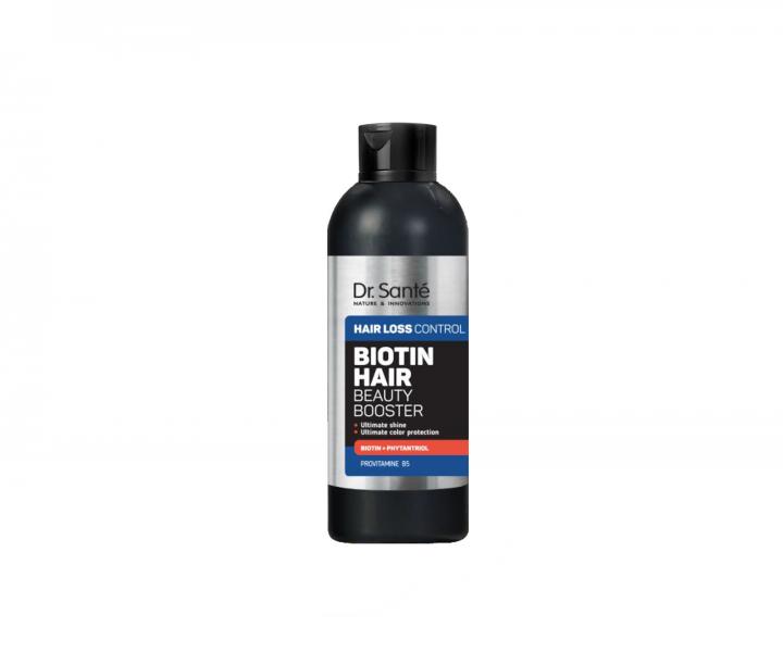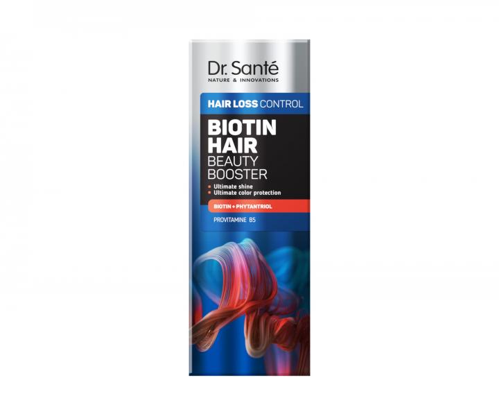 Skrášľujúci booster Dr. Santé Hair Loss Control Biotin Hair Beauty Booster je multifunkčný produkt, ktorý umožňuje dosiahnutie rovnakého efektu ako pri návšteve kaderníckeho salónu. Booster má vysokú koncentráciu účinných látok a zvyšuje a znásobuje tak účinky základnej starostlivosti o vlasy. Jeho unikátne zloženie s biotínom a provitamínom B5 intenzívne vlasy spevňuje a posilňuje, čo zlepšuje ich celkovú kvalitu. Booster ponúka dve možnosti použitia. Prvou možnosťou je tepelná rekonštrukcia a druhou možnosťou je expresná regenerácia.