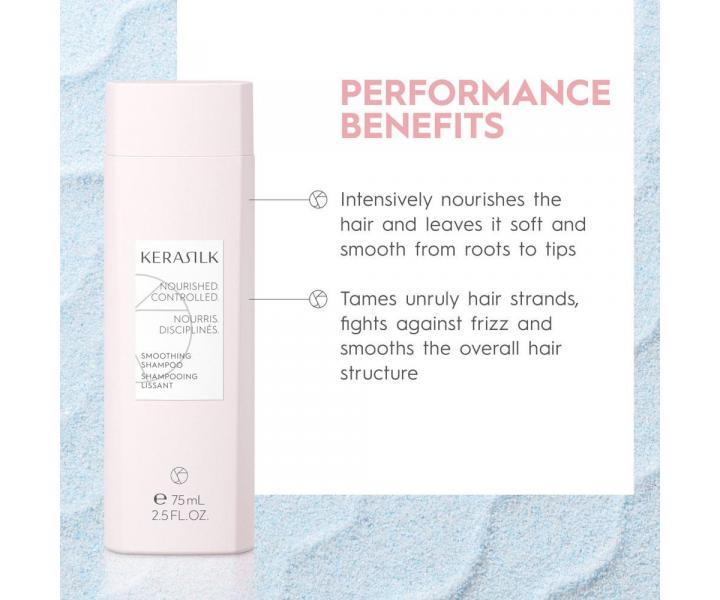 Vyhladzujúci šampón pre krepaté, nepoddajné a kučeravé vlasy Kerasilk Smoothing Shampoo - 75 ml