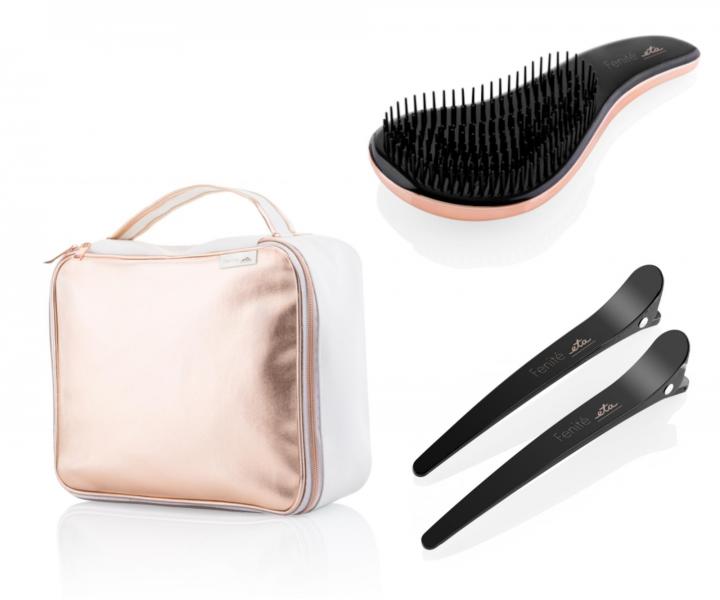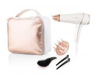 Uchovajte svoj fén a všetko jeho príslušenstvo v bezpečí pred poškodením a odreninami vďaka praktickej cestovnej taške. Taška vo veľmi elegantnom bielom a staroružovom dizajne má jedno hlavné vrecko so zapínaním na zips. Vďaka jej veľkosti 25 x 32 x 8 cm do tašky pohodlne umiestnite všetko potrebné na fénovanie vlasov. Taška je vyrobená z koženkového materiálu.