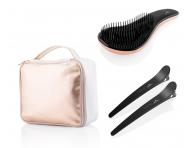 Plastová kefa na vlasy s jemnými štetinami v dvoch vrstvách, ktoré umožňujú ľahké, rýchle a bezbolestné rozčesanie aj veľmi zacuchaných vlasov. Dlhé štetiny rozčesávajú zacuchané vlasy a krátke štetiny im dodajú lesk a zdravší vzhľad. Kefa je vhodná na rozčesávanie všetkých typov suchých aj mokrých vlasov i fúzov. Vďaka svojej malej veľkosti je vhodný najmä na cestovanie. Ideálna je tiež napríklad na rovnomerné nanesenie ošetrujúcich prípravkov. Ergonomický tvar kefy v elegantnom lesklom ružovo čiernom prevedení skvele padne do ruky.