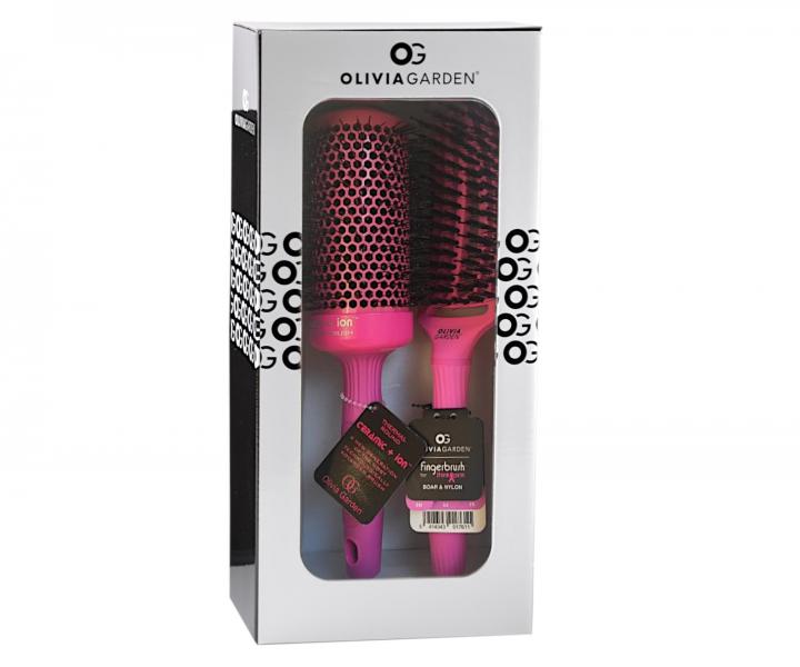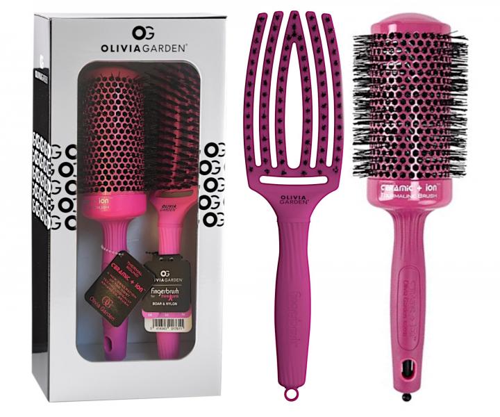 | Kefa Olivia Garden Fingerbrush Combo Medium Farba: darčeková sada - plochá kefa ružová + guľatá kefa 55 mm |