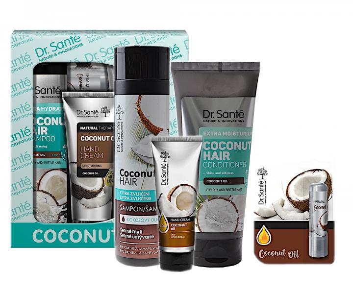 Darčeková sada na hydratáciu krehkých vlasov Dr. Santé Coconut obsahuje: