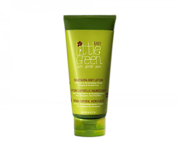 Jemný hydratačný krém Little Green Baby Nourishing Body Lotion je ideálny na hydratáciu pokožky celého tela vrátane rúk, nôh a tváre a to nielen u bábätiek. Krém má rýchlo sa vstrebávajúce a nemastné zloženie obsahujúce prírodné zložky ako je bambucké maslo, avokádový olej, olivový olej a aloe. Týmto zložením krém zaisťuje celodennú hydratáciu pokožky. Zloženie neobsahuje ftaláty, sulfáty, parabény a lepok. Vôňa krému korešponduje s prirodzenou vôňou novorodenca.
