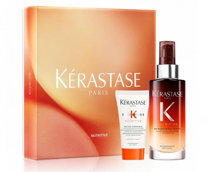Kérastase Nutritive 8H Magic Night Serum je intenzívne, vyživujúce nočné sérum, ktoré pôsobí počas ôsmich hodín spánku, kedy revitalizuje a regeneruje suché vlasy a zabraňuje ich vysušovaniu. Vďaka unikátnemu zloženiu neobsahujúcemu parabény je veľmi ľahké, nemastné a nezaťažuje vlasy. Receptúra obohatená o polyméry, ktoré zabraňujú poškodeniu pri trení vlasov o vankúš, a množstvo ďalších účinných zložiek dodáva jednotlivým prameňom maximálnu výživu a posilnenie, takže sú ráno viditeľne zdravšie, silnejšie a lesklejšie. Používanie séra tak okamžite prináša až o 98% silnejšie vlasy, zníženie krepovatenia o 84%, o 48% väčšiu hebkosť a o 40% viac žiarivosti. Navyše je fľaša séra vyrobená z 20% z recyklovaného skla a je teda šetrná k životnému prostrediu.