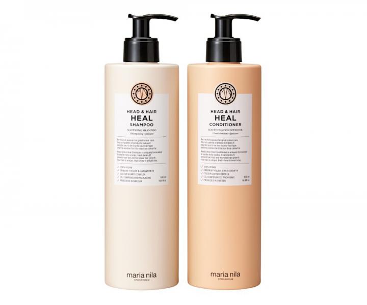 Kondicionér Maria Nila Head & Hair Heal Conditioner svojim protizápalovým zložením s obsahom aloe vera a piroktón olamínu lieči pokožku hlavy a zabraňuje tvorbe lupín či vzniku iných problémov pokožky hlavy. Kondicionér pokožku hlavy aj vlasy hydratuje, pokožku upokojuje, hojí a dodáva jej prirodzenú rovnováhu. Súčasne kondicionér stimuluje vlasové folikuly a podporuje tak rast vlasov. Komplex Color Guard chráni vlasy pred UV žiarením a farbeným vlasom zaisťuje dlhšie trvajúcu a žiarivú farbu. Kondicionér má jemnú kvetinovú vôňu bieleho jazmínu, galbany a lipového kvetu bez dráždivých parfumačných látok, vďaka čomu je vhodný aj pre veľmi citlivú pokožku hlavy. Zloženie kondicionéra je vegánske.