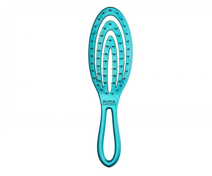 Plochá kefa na rozčesávanie vlasov Olivia Garden Holiday má zaoblené telo, vďaka ktorému perfektne kopíruje tvar vlasovej pokožky a bráni tak jej podráždeniu. Vďaka zdvojeným nylonovým štetinám kefa vlasy perfektne rozčeše a guličky na koncoch štetín masírujú pokožku hlavy. Kefa je vhodná na rozčesávanie všetkých typov vlasov.