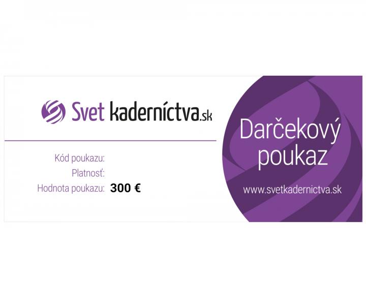 Premýšľate o darčeku zo Svet kaderníctva.sk, ktorý urobí Vašim blízkym radosť a neviete si rady? Darujte darčekový poukaz na 300 €, ktorý môže obdarovaný využiť na nákup ktoréhokoľvek tovaru z našej ponuky. S darčekovým poukazom neurobíte chybu, či už vyberáte darček pre partnera, rodičov, súrodencov alebo svojich priateľov. Každý si tak môže vybra... viac »