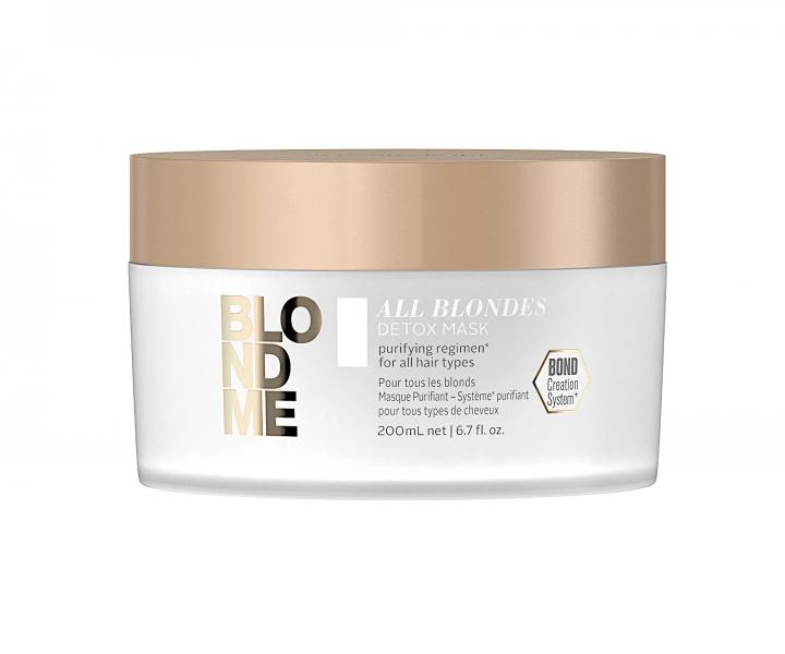 Maska Schwarzkopf Professional All Blondes Detox Mask je ideálny na detoxikáciu všetkých typov blond vlasov. Vďaka technológii 3D Bond Creation a obsahu proteínového komplexu zo severskej bavlny vytvára nové väzby v štruktúre vlasového vlákna, vlasy hĺbkovo čistí, odstraňuje nečistoty, nánosy minerálov z tvrdej vody aj zvyšky stylingových produktov a upokojuje a chráni jemnú a citlivú pokožku hlavy. Maska napomáha k uvoľneniu zanesených pórov vo vlasovom vlákne, čím vlasy dôkladne očisťuje. Najlepšie výsledky dosiahnete spoločným používaním šampónu a masky. Maska neobsahuje sulfáty.