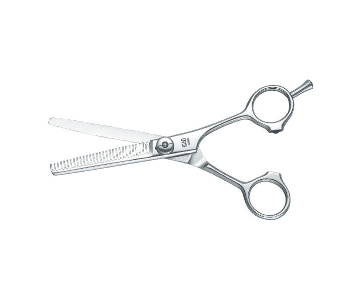 Špičkové japonské nožnice Kasho vyrobené tradičnou metódou kováčov japonských samurajských mečov. Táto semi-offset (čiastočne zahnutá) séria je vybavená skrutkou nastavujícím napätie a integrovaným guličkovým ložiskom. Nožnice majú zuby tvarované najnovšou technikou tak, aby sa každý z nich stretol s reznou hranou pod identickým uhlom. Medzery medzi zubami sa zužujú smerom k vnútornej strane čepele noža, čo zabraňuje zapletanie vlasov pri odťahu. Konvexne brúsené čepele sú leštené do zrkadlového lesku.