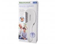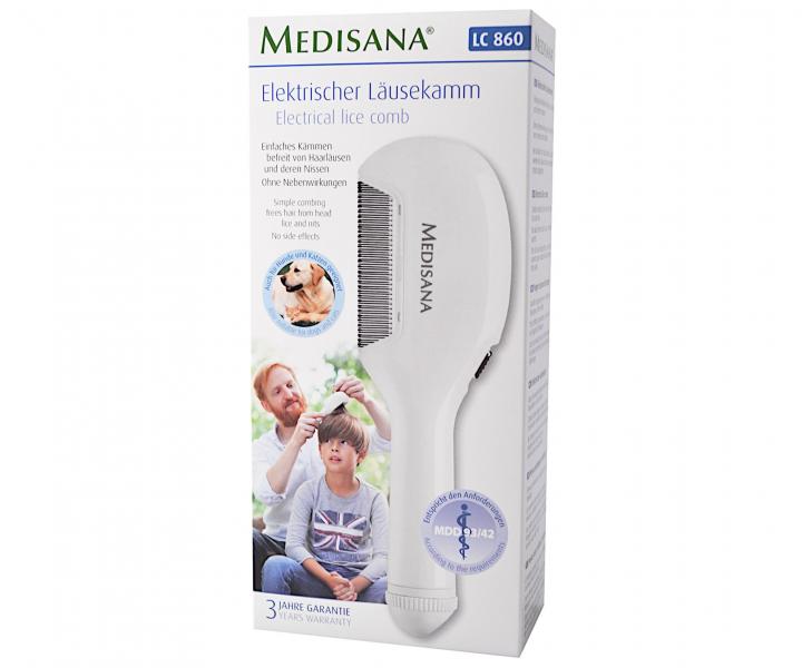 Elektrický odvšivovací hrebeň Medisana účinne zneškodňuje vši bez použitia chemických prostriedkov. Prerušenie bzučivého zvuku, ktorý hrebeň vydáva, keď je zapnutý, signalizuje zneškodnenia vši alebo vajíčka. Keď bzučanie prestane úplne, nazbierali ste vší toľko, koľko sa len do hrebeňa vošlo. Vyčistite ho kefkou a pokračujte v používaní, než budú vlasy úplne bez vší. Kefka je umiestnená v spodnej časti hrebeňa. Použitie elektrického napätia je natoľko nízke, že je užívateľ necíti a je pre neho úplne neškodné. Hrebeň má hrebeňovú plochu dlhú 6 cm. Účinne odstraňuje vši, hnidy alebo blchy u domácich zvierat. Vhodný pre deti aj pre použitie na domácich zvieratách.