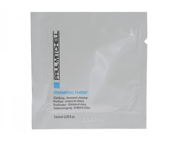 Hĺbkovo čistiaci šampón Paul Mitchell Shampoo Three obsahuje špeciálnu receptúru s peelingovým efektom, ktorá čistí vlas do hĺbky. Zabraňuje zelenaní vlasov z chlórovanej vody. Odstraňuje zvyšky stylingu, chlóru, železa, minerálov a liekov. Posilňuje vlasy zvnútra. Ideálny pred použitím hĺbkovej starostlivosti.