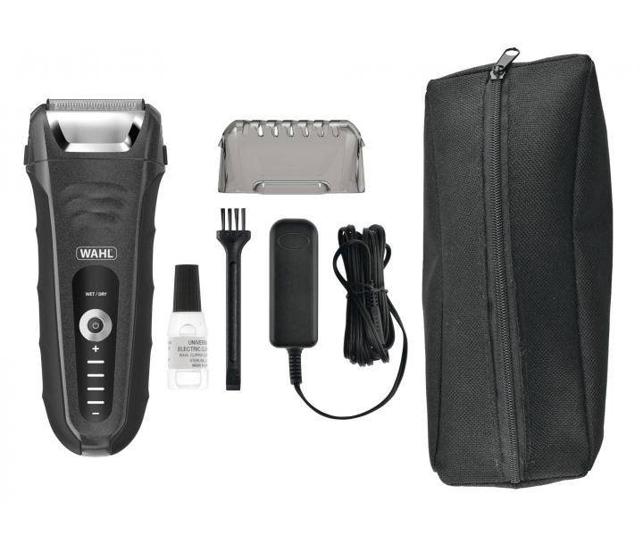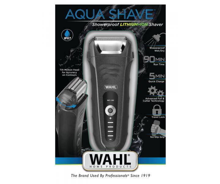Holiaci strojček Aqua Shave značky WAHL, s brity z nerezovej ocele, zaisťuje maximálne pohodlné oholenie suché tváre, ale vďaka vodeodolnosti ho môžete použiť v sprche aj vo vani. Pohyblivá hlavica strojčeka oholí každý fúz a prispôsobí sa tvaru vašej tváre. Strojček má pogumovanú časť, ktorá bráni vykĺznutiu strojčeka z ruky a je odolný proti nárazu. Doba prevádzky pri plnom nabití je 90 minút a funkcia rýchleho 5 minútového nabitie vám uľahčí každodenné použitie.