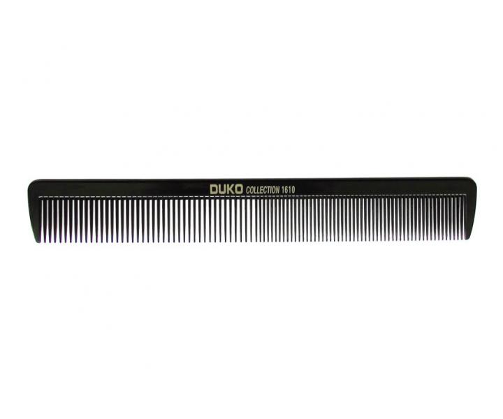 Hrebeň Duko Collection 1610 je ideálny na pánske strihy. Hrebeň je odolný voči mechanickému poškodeniu. Dve odlišné šírky medzier medzi hrotmi uľahčujú rozčesanie vlasov.