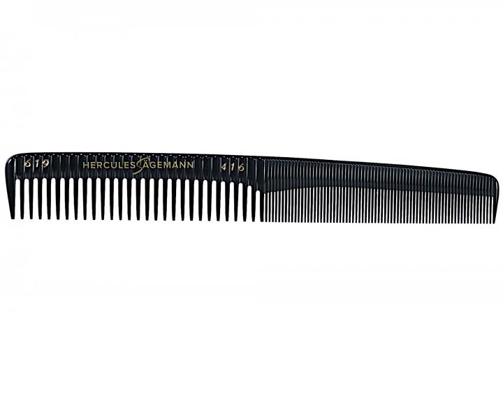 Hrebeň na strihanie vlasov Hercules Sägemann 619-416 je vyrobený z tepelne odolného materiálu a nereaguje s chemikáliami, je teda ideálny na použitie v kaderníckom salóne. Hrebeň je kvalitne ručne rezaný, brúsený a leštený. Je vhodný pre všetky typy vlasov a jemný k pokožke. Dve odlišné šírky medzier medzi hrotmi umožňujú ľahšie rozčesávanie. Zaoblené zuby na hrebeni zabraňujú poškodeniu vlasov či pokožky hlavy. Hrebeň je vyrobený zo 100% prírodného kaučuku, vďaka čomu má antistatické vlastnosti.