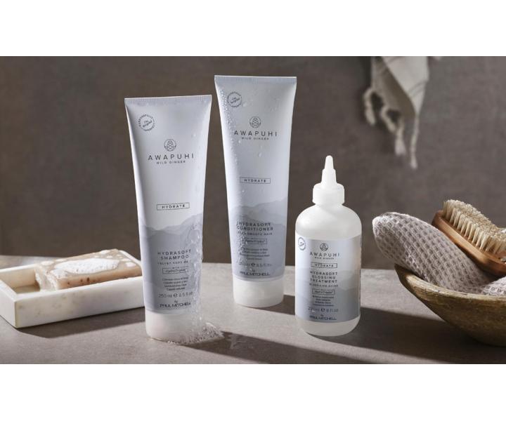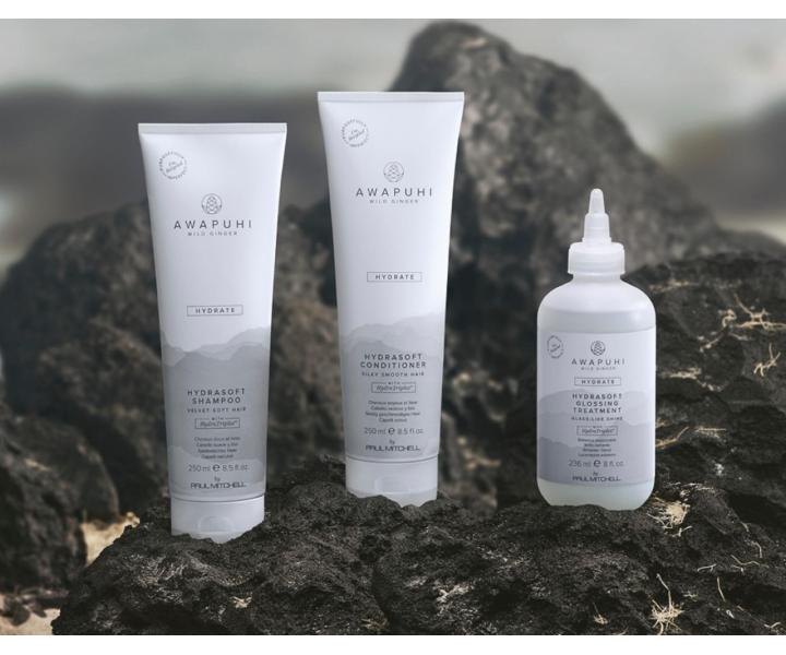 Kondicionér Paul Mitchell Awapuhi Wild Ginger® Hydrate Hydrasoft Conditioner vlasy jemne ošetruje, vyživuje a zároveň im poskytuje optimálnu hydratáciu. Jedinečná zmes aminokyselín, rastlinných bielkovín a vyživujúcich olejov HydraTriplex™ vlasy hydratuje do hĺbky, zjemňuje a dodáva im krásny lesk. Kyselina hyalurónová v kombinácii s vegánskym kolagénom a rastlinnými výťažkami dodáva vlasom potrebnú vlhkosť bez toho, aby ich zaťažovala. Kyselina hyalurónová taktiež pomáha vytvoriť ochrannú bariéru proti škodlivým vonkajším vplyvom, ktoré môžu poškodzovať vlasy. Kondicionér chráni farbu vlasov pred vyblednutím a neobsahuje sulfáty ani parabény.