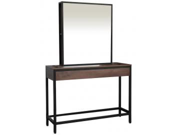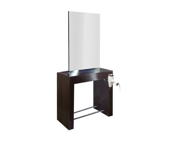 Kadernícka obojstranná obsluha SISSI vyrobená z dyhy má z každej strany obdĺžnikové zrkadlo, odkladací priestor, zásuvku, integrovanú opierku na nohy a držiak na fén.