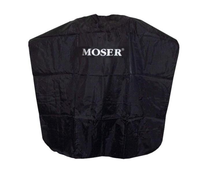 Profesionálna kadernícka pláštenka Moser 0092-0141 na strihanie s upevnením na suchý zips so strieborným nápisom výrobca.