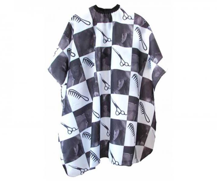 Profesionálna kadernícka pláštenka na strihanie Duko 580B so zapínaním na kovový háčik je nepostrádateľným pomocníkom pre každý profesionálny kadernícky salón alebo pre domáce strihanie. Pláštenka má potlač s motívom nožníc a je vyrobená z polyesteru. Farba: čierna, biela Materiál: polyester Zapínanie: háčik Rozmery: šírka 120 cm, výška 140 cm V... viac »