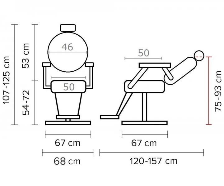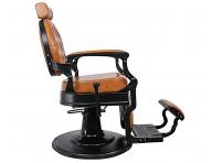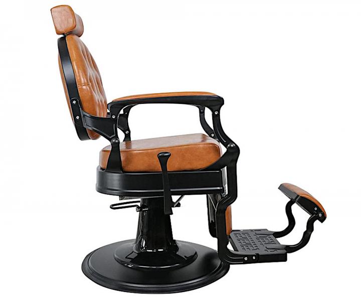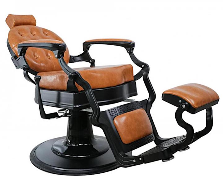 Luxusné kadernícke barber kreslo Hairway Romeo vo svetlo hnedom prevedení s čiernou kovovou konštrukciou dodá tú správnu atmosféru každému barbershopu. Kreslo má sklopnú opierku chrbta až na 145 °, sklápanie je zaistené pomocou páky na boku kresla. Komplex prvkov, ako je nastaviteľná a odnímateľná opierka hlavy, polstrované podrúčky, nožná opierka a celkové mäkké polstrovanie, zaisťujú maximálne pohodlie zákazníka. Pevná opierka nôh je synchrónna so sklopnou opierkou chrbta, väčšie pohodlie v polohe v ľahu potom zaisťuje polstrovaná skladacia opierka nôh. Kreslo má výškovo nastaviteľný sed pomocou hydraulického piestu s možnosťou jeho otáčania aj uzamknutia. Vysoko kvalitná umelá koženka kresla uľahčuje údržbu kresla. Stabilitu celému kreslu dodáva pevná okrúhla základňa s priemerom 67 cm.
