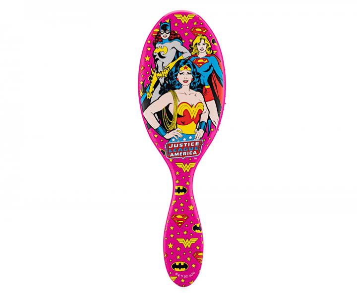 Kefa Wet Brush Original Detangler zaistí ľahké a šetrné rozčesávanie vlasov bez bolestivého ťahania. Na pneumatickom vankúšiku sú v niekoľkých radoch umiestnené exkluzívne štetiny s technológiou Intelliflex, ktoré jemne prekĺzavajú jednotlivými pramienkami vlasov, a tak uľahčujú rozčesávanie vlasov až o 55 %. Zároveň znižujú riziko vzniku rozstrapkaných končekov a lámanie vlasov v priebehu česania až o 45 %. Štetiny sú zakončené malými guličkami, ktoré chránia pokožku hlavy pred podráždením a súčasne ju masírujú. Kefa je vhodná na mokré aj suché rozčesávanie všetkých typov vlasov. Má veselý dizajn s motívom DC postavičiek Wonder Woman, Batgirl a Supergirl.