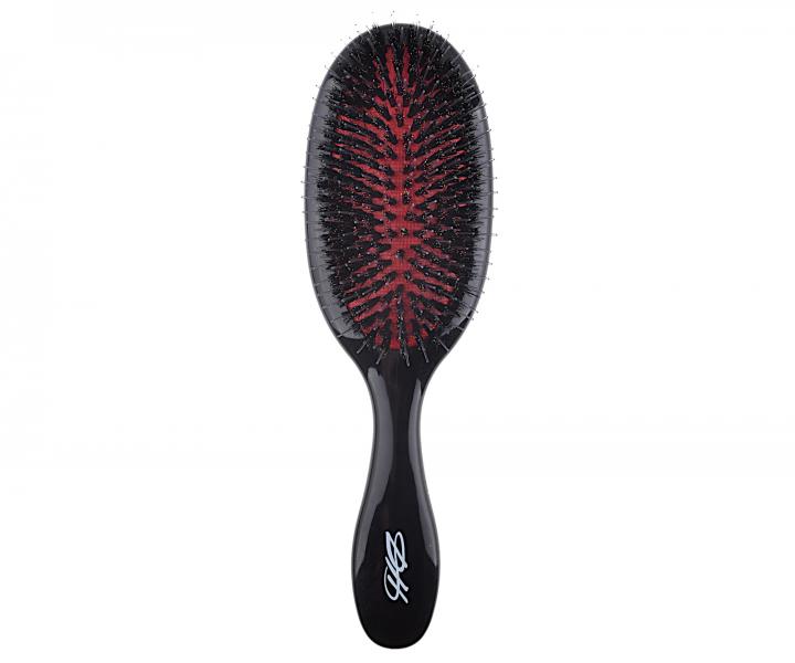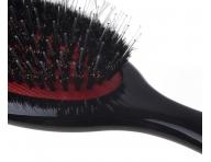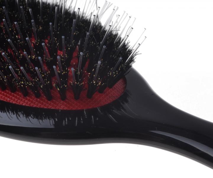 Plochá kefa na vlasy Detail - Hair Style je perfektným pomocníkom na rozčesávanie stredne dlhých a dlhých vlasov. Vďaka nylonovým štetinám, ktoré nie sú zakončené guličkou, je kefa ideálna na rozčesávanie predĺžených vlasov. Kancové a nylonové štetiny sú uložené v pneumatickom vankúšiku, vďaka čomu nie je na vlasovú pokožku vyvíjaný nadmerný tlak a je pri česaní chránená pred poškodením. Kancové štetiny eliminujú strapatenie vlasov a ich poletovanie, a zároveň sú veľmi šetrné k vlasovému vláknu.
