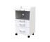 Kozmetický drevený stolík s tromi zásuvkami a voľným priestorom napríklad pre UV-lampu v lakovanom bielom prevedení. Stolík má pojazdné kolieska, ktoré umožňujú jednoduchý presun a na zadnej časti steny je otvor pre kábel.