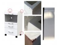Tovar má kozmetické vady - rohy stolíka sú otlčené. Chyby nemajú vplyv na funkciu a používanie stolíka. Kozmetický drevený stolík s tromi zásuvkami a voľným priestorom napríklad pre UV-lampu v lakovanom bielom prevedení. Stolík má pojazdné kolieska, ktoré umožňujú jednoduchý presun a na zadnej časti steny je otvor pre kábel. Vlastnosti: - 3 zás... viac »