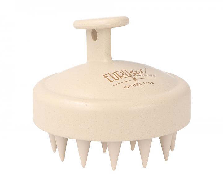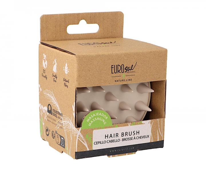 Exfoliačná a masážna kefa Eurostil Professional prináša pokožke hlavy nielen masážny a relaxačný zážitok, ale aj zdravie. Kefa má ergonomický design, vďaka ktorému skvele padne do dlane. Mäkké a pružné silikónové štetiny kužeľovitého tvaru sú k pokožke šetrné. Jemne odstraňujú z pokožky odumreté kožné bunky a zvyšky stylingových produktov a podporujú tak zdravie vlasov už od korienkov. Kefa je ideálna pre použitie v sprche na mokré vlasy, možno ju však použiť aj na vlasy suché. Kefa je vyrobená z recyklovaného materiálu. Vhodná pre všetky typy vlasov.