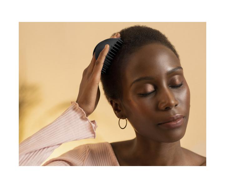 1. Na exfoliáciu masírujte pokožku hlavy krúživými pohybmi alebo ťahom od čela k zátylku po dobu 3 minút.