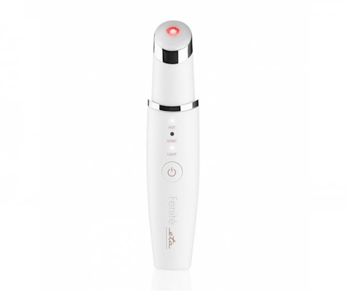 Doprajte pokožke okolo očí starostlivosť, ktorú si zaslúži, pomocou masážneho strojčeka ETA Fenité 3353. Strojček disponuje tromi základnými funkciami - terapiou červeným svetlom, sonickou vibračnou terapiou a tepelnou terapiou, ktoré je možné medzi sebou navzájom kombinovať. Celkom tak máte na výber zo siedmich masážnych režimov. Červené svetlo vo vlnovej dĺžke 610-700 nm preniká do kožného tkaniva až do hĺbky 2,5 cm, kde účinne potláča známky starnutia pleti, únavy, podporuje tvorbu kolagénu a priaznivo tak ovplyvňuje elasticitu pleti. V neposlednom rade je červené svetlo účinné na lepšie vstrebávanie pleťových sér a krémov. Pri tepelnej terapii sa hlavica strojčeka nahrieva až na 40 °C, čo je ideálna teplota na otvorenie pórov, uvoľnenie pleti a podporenie krvného obehu, je tiež vhodná na prípravu pleti na ďalšie ošetrenie. Sonická vibračná terapia potom poskytne príjemnú vibračnú masáž, vďaka ktorej je stimulovaný krvný obeh a taktiež je podporený odvod škodlivých látok z pokožky. O tom, aký zo 7 režimov máte zvolený, prehľadne informujú LED diódy na tele strojčeka. Masážny strojček disponuje časovačom s automatickým vypnutím po 5 minútach - zaisťuje tak optimálnu dobu masáže. Strojček má akumulátorovú prevádzku s maximálnou dobou 150 minút. Doba nabíjania je potom 120 minút pomocou USB kábla.