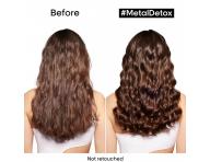 Ochranná maska L'Oréal Professionnel Serie Expert Metal Detox chráni vlasové vlákno proti ukladaniu kovových častíc po akejkoľvek službe farbenia, balayage alebo zosvetľovania. Zachováva žiarivú a intenzívne lesklú farbu. Vlasy sú okamžite hladšie, hebkejšie a viac vyživené. Kovy vnútri vlasového vlákna vytvárajú riziko lámania a negatívne ovplyvňujú farebné výsledky počas služieb farbenia, balayage a zosvetľovania. Miera kovov vo vlasoch sa líši v závislosti na poréznosti vlasov a kvalite vody v mieste, kde žijeme. Táto patentovaná technológia je obohatená o Glicoamine, molekulu, ktorá je dostatočne malá, aby prenikla dovnútra vlasového vlákna a neutralizovala tu kovy. Rad Metal Detox prináša profesionálnu záruku vašej službe farbenie, balayage alebo zosvetľovanie pre menšie riziko lámanie o 87 %.