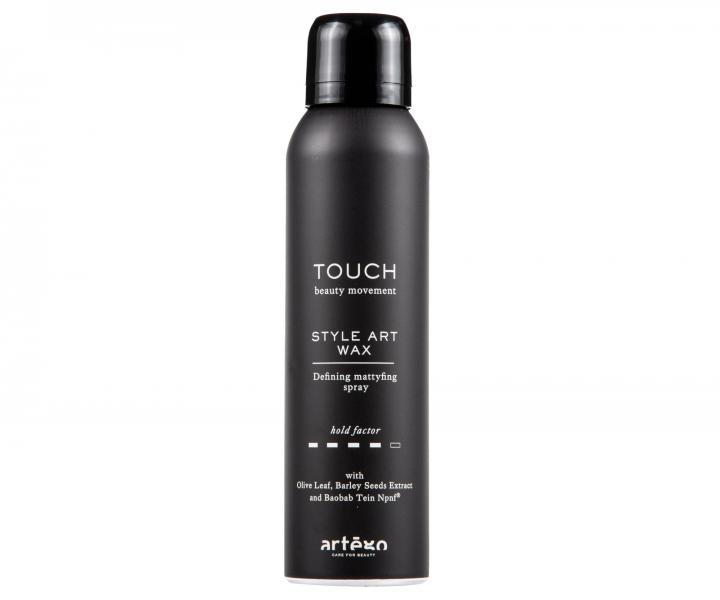 S voskom v spreji Artégo Touch Style Art Wax vytvoríte najrôznejšie účesy ľahko a rýchlo. Vosk poskytuje vlasom silnú fixáciu s prirodzeným matným efektom, dodáva im pružnú textúru a umožňuje ich ľahkú úpravu do požadovaného účesu. Jemným vlasom dodáva objem a opticky ich zahusťuje. Aktívne látky, ako je výťažok z olivových listov a jačmeňa a látka Baobab Tein Npnf, poskytujú vlasom hydratáciu a eliminujú ich poškodenie. Vosk v spreji je vhodný pre všetky typy vlasov.