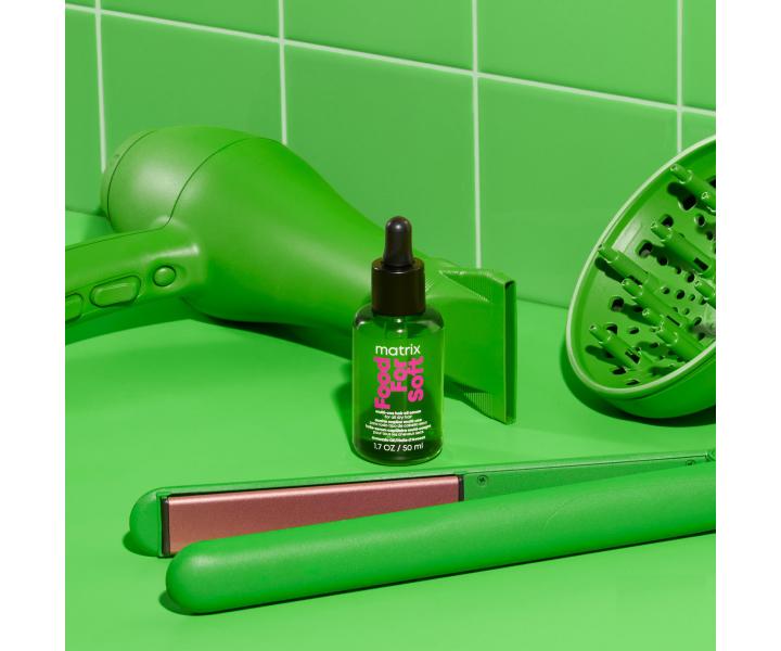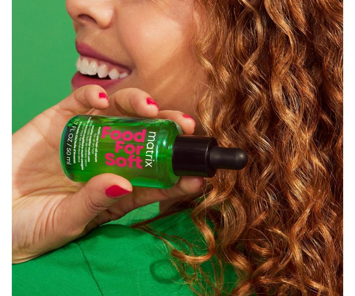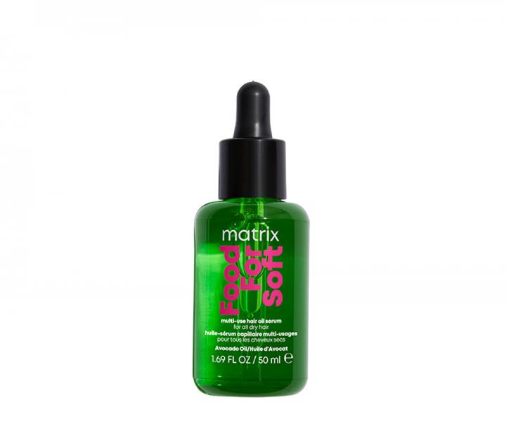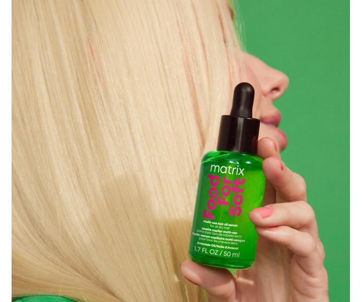 Olejové sérum Matrix Food For Soft Multi-Use Hair Oil Serum je ideálnym doplnkom vlasovej rutiny na dosiahnutie dokonale vyživených a nádherne vyzerajúcich vlasov. Avokádový olej, o ktorý je obohatená unikátna receptúra séra, poskytuje hĺbkovú hydratáciu a zanecháva jednotlivé pramene vlasov oslnivo lesklé. Zároveň prepožičiava suchým vlasom pocit výživy a ochranu pred negatívnymi účinkami tepla až do 230 °C. Sérum je možné používať každý deň a to ako na vlhké, tak na suché vlasy, ktoré potom vyzerajú skvele a sú ľahko upraviteľné po dlhú dobu. Sérum je vhodné pre všetky typy suchých vlasov, vrátane farbených.
