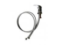 Náhradná zmiešavacia batéria s hladkou pákou k umývaciemu boxu Detail v prevedení lesklý chróm. Súčasťou batérie sú 2x nerezové hadičky pre prívod teplej a studenej vody. Batéria môže byť použitá aj pre iné umývacie boxy, ak zodpovedá požadovaným rozmerom.