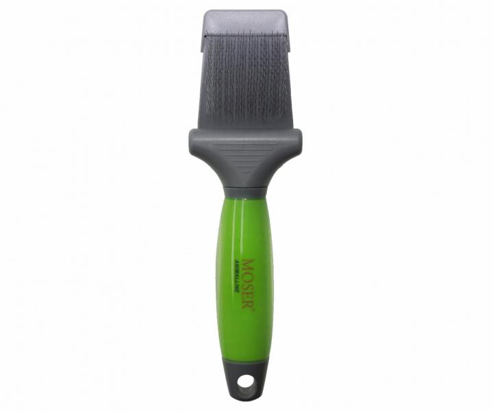 Obojstranná, flexibilná kefa Wahl Premium Slicker Brush na rozčesávanie srsťi a odstraňovanie pĺznúcu chlpov a nečistôt. Univerzálna veľkosť kefy je vhodná pre všetky plemená psov i mačiek. Každá strana kefy má inú hustotu osadenia štetín - čierna strana - vhodná pre vyčesávanie dlhej srsti, šedá strana - ideálna pre kratšiu srsť alebo jemnú srsť v oblasti ňufáku a labiek. Tvar kefy je flexibilný, necuchá srsť a nespôsobuje zvieraťu bolesť. Príjemné gélové držadlo sa presne vytvaruje podľa vašej dlane. Vďaka tomu je kefa dobre uchopiteľný a nešmýka z ruky. Súčasťou rukoväte je očko pre zavesenie a odloženie kefy.