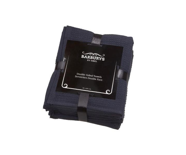 Obojstranné uteráky Barburys sú vhodné ako pre holiča, tak pre domáce použitie. Z jednej strany sú na utieranie, strihanie a holenie a z druhej mäkké strany na sušenie. Okraj uteráka je spevnený lemovaním.