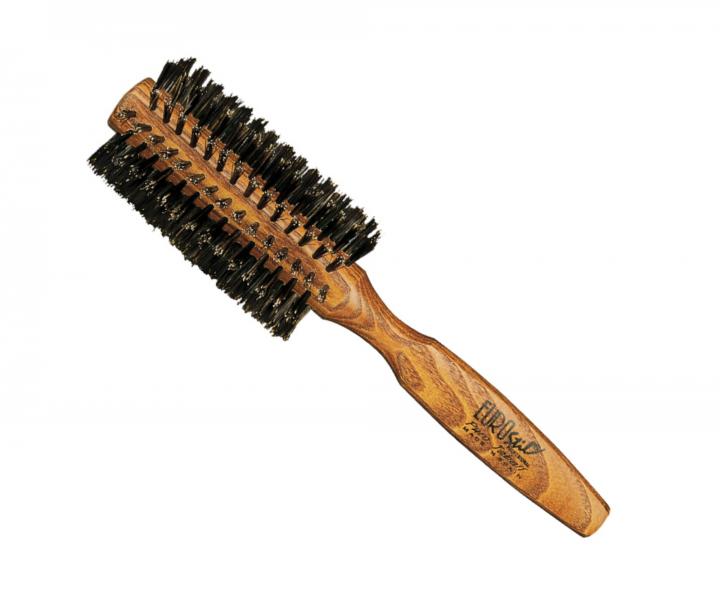 Okrúhla drevená kefa Eurostil Profesional je praktická kefa pre každodenné použitie, vhodná na fúkanie vlasov fénom. Má 100% prírodné diviačie štetiny, ktoré sú veľmi šetrné k vlasovému vláknu. Vďaka diviačim štetinám sú vlasy lesklejšie, necuchajú sa, majú ohromujúci objem, sú viditeľne zdravšie a oveľa lepšie sa upravujú. S drevenou kefou vytvoríte očarujúci a žiarivo lesklý účes.