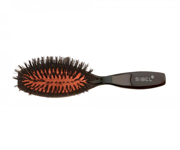 Oválna kefa na vlasy Sibel s diviačími a nylonovými štetinami na pneumatickom vankúšiku. Vankúšik chráni pokožku pred príliš veľkým tlakom. Kefa má antistatický účinok a dodáva vlasom lesk. Nylónové štetiny masírujú pokožku, diviačie štetiny dodávajú vlasom ich prirodzený lesk a objem. Kefa zabraňuje strapateniu a nežiaducemu poletovaniu vlasov. Je veľmi šetrný k povrchu vlasu.