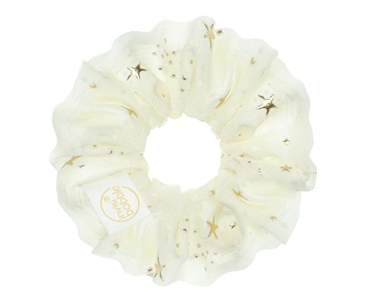 Invisibobble Sprunchie Time to Shine The Sparkle is Real je dokonalým spojením štýlu a praktickosti. Táto ozdobná špirálová gumička ukrýva jedinečnú technológiu, ktorá zaisťuje pevné uchopenie vlasov bez nepríjemného ťahania či lámania a umožňuje pohodlné nosenie po celý deň. Elegantný dizajn v krémovej farbe s jemnými zlatými aplikáciami hviezd a nadýchanou luxusnou látkou s gázovitou textúrou dodáva vlasom krásny vzhľad, či už ju nosíte ako súčasť ležérneho účesu alebo večerného štýlu. Vďaka mäkkému textilnému povrchu je gumička šetrná k vlasom a skvele pôsobí aj ako módny doplnok vo vlasoch či na zápästí. Perfektná voľba pre tých, ktorí chcú spojiť funkčnosť s očarujúcim vzhľadom.