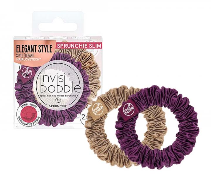 | Ozdobné špirálové gumičky Invisibobble Sprunchia Slim - 2 kusy Farba: zlatá a vínová |