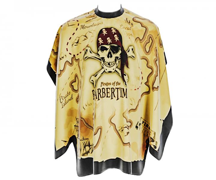 Profesionálna pánska pláštenka na strihanie vlasov a fúzov Pirates of the Barbertime Mapped Pro Barber Cape XL so zapínaním na kovový háčik je nepostrádateľným pomocníkom pre každý profesionálny kadernícky salón, barbershop ale aj pri domácom strihaní. Pláštenka je vyrobená zo 100% polyesteru, čo je veľmi ľahký priedušný materiál s antistatickými účinkami, odpudzuje vodu a ľahko sa udržuje. Pláštenka má univerzálny strih a väčšiu veľkosť 115x150 cm. Design pláštenky v štýle pirátskej mapy je doplnený o logo značky na hrudi.