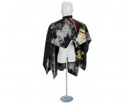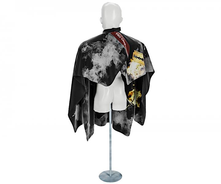 Profesionálna pánska pláštenka na strihanie vlasov a fúzov Pirates of the Barbertime Smoky Pro Barber Cape XL so zapínaním na kovový háčik je nepostrádateľným pomocníkom pre každý profesionálny kadernícky salón, barbershop ale aj pri domácom strihaní. Pláštenka je vyrobená zo 100% polyesteru, čo je veľmi ľahký priedušný materiál s antistatickými účinkami, odpudzuje vodu a ľahko sa udržuje. Pláštenka má univerzálny strih a väčšiu veľkosť 115x150 cm. Čierny design pláštenky s motívom dymu, plameňov a s obrázkami nožníc a žiletky je doplnený o logo značky na hrudi.