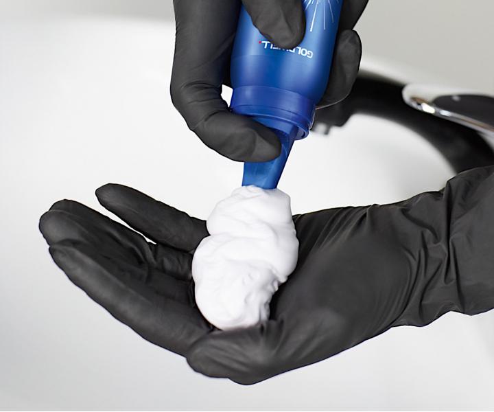 2. Naneste penu rovnomerne do umytých, uterákom vysušených vlasov.
