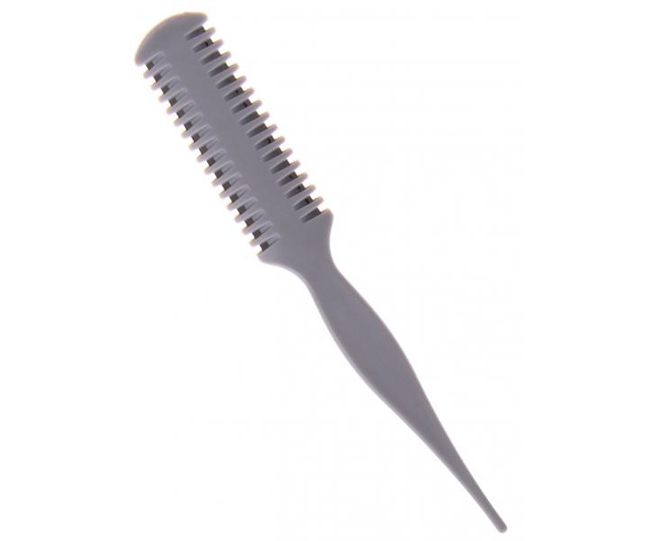 Plastová britva na zrezávanie vlasov. Dĺžka ostria je 7 cm. Britva je na dve klasické žiletky, ktoré možno ľahko vymeniť. Balenie obsahuje 2 žiletky. Dĺžka ostria: 7 cm Dĺžka celej britvy: 19,5 cm Farba: čierna alebo sivá Výber farby britvy na zrezávanie je náhodný!