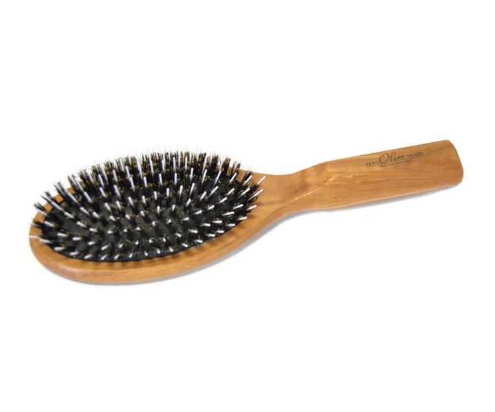 Profesionálna plocha rozčesávacia kefa Keller z unikátnej rady Exclusive-Line vyrobený z pravého olivového dreva v kombinácii s prírodnými štetinami a nylonovými kolíčky. Pre veľmi ľahké rozčesávanie.