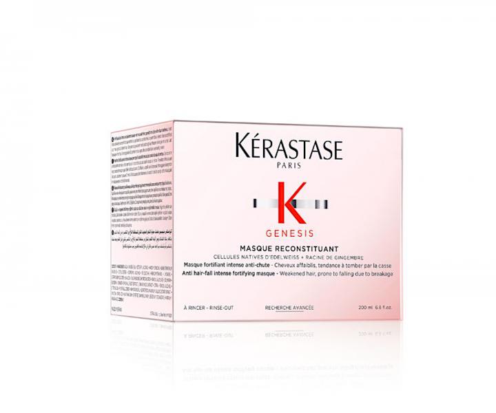 Intenzívne posilňujúci maska ​​pre vlasy so sklonom k ​​padaniu Kérastase Masque Reconstituant. Pomáha obnoviť oslabené vlasové vlákno a posilňuje jeho prirodzenú odolnosť. Znižuje riziko padania vlasov spôsobené lámaním. Poskytuje okamžitú pevnosť a hebkosť bez zaťaženia. Uľahčuje rozčesávanie vlasov. Vlasy sú hebké, lesklé a posilnené.