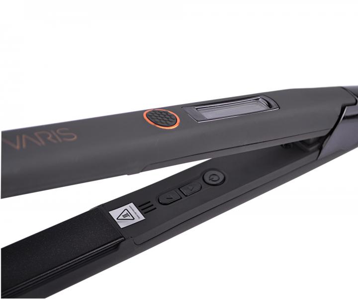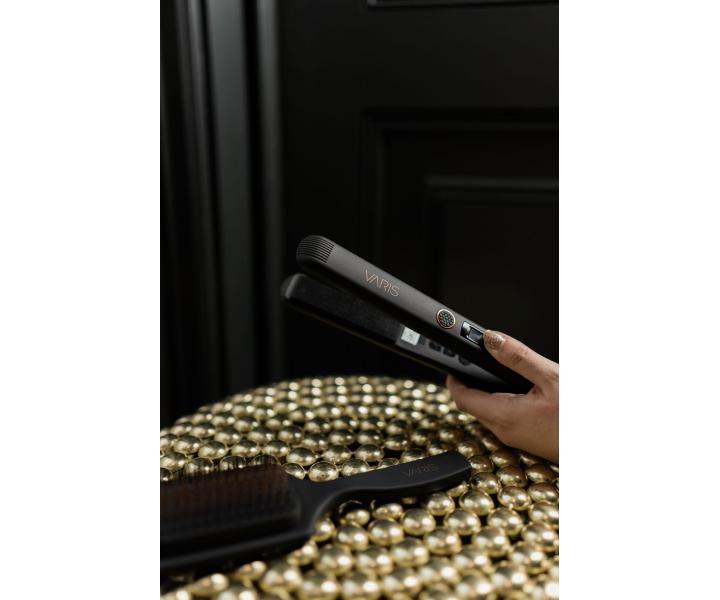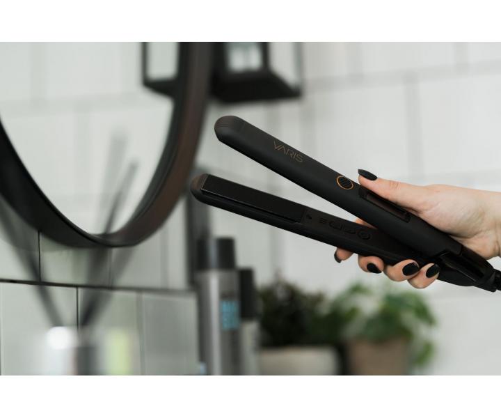 Profesionálna žehlička na vlasy Varis Smoother je skvelým pomocníkom na vytváranie rovných aj vlnitých štýlov účesov. Plávajúce keramické žehliace doštičky poskytujú rovnomerné rozloženie teploty, navyše sú napustené hydroiontovými kryštálmi, ktoré vlasom dodávajú hydratáciu a ošetrujú ich. Žehlenie vlasov je tak rýchle a šetrnejšie. Žehlička umožňuje nastavenie teploty v rozmedzí od 140 °C do 230 °C pomocou tlačidiel + a - na tele žehličky. Každé stlačenie tlačidla znamená zmenu teploty o 5 °C. O zvolenej teplote informuje LCD displej. Žehlička je vybavená teplotnou pamäťou, po zapnutí sa tak automaticky nastaví na naposledy použitú teplotu. 2,7 metra dlhý otočný kábel uľahčuje manipuláciu so žehličkou, k tomu prispieva aj protišmykový úchyt pre palec na vrchnej strane žehličky. Žehlička je vhodná pre všetky typy vlasov, vďaka úzkym doštičkám o šírke 26 mm je však ideálna pre styling najmä kratších vlasov. Nechýba ani funkcia automatické vypnutie po jednej hodine nečinnosti.