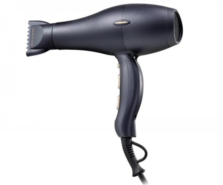 Profesionálny fén na vlasy Bio Ionic GoldPro Speed Dryer disponuje silným motorom s výkonom 2000 W, zaistí tak rýchle a jednoduché vysúšanie vlasov. Vďaka funkcii ionizácie, ktorá udržuje vo vlasoch hydratáciu, eliminuje krepatenie vlasov a poletovanie vplyvom statickej elektriny, je vysúšanie vlasov s týmto fénom tiež šetrné. Obsah 24K zlata v materiáloch tela fénu zaisťuje konštantné a rovnomerné rozloženie tepla, zatiaľ čo keramický komplex vlasy hydratuje a dodáva im lesk a zdravý vzhľad. Vďaka tlačidlám na vnútornej strane rukoväte je možné fén nastaviť až na tri možnosti teploty vzduchu a dve možnosti rýchlosti vzduchu. Nechýba ani samostatné tlačidlo studeného vzduchu na zafixovanie účesu. Jeho nízka hmotnosť (480 g) a kábel s dĺžkou 2,7 metrov uľahčujú manipuláciu. Balenie obsahuje širokú a úzku vzduchovú trysku.